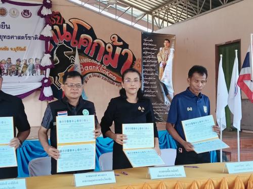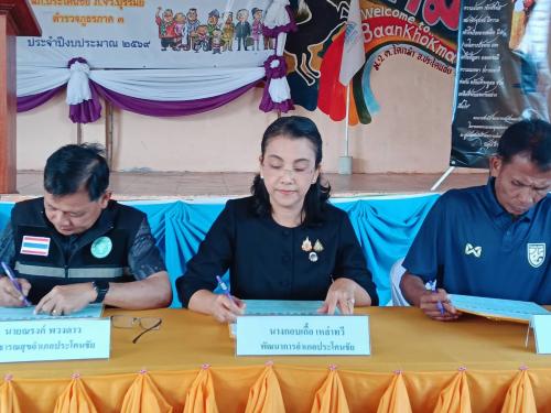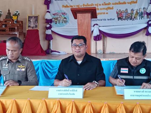 💠ในการนี้ นางกอบเกื้อ เหล่าทวี พัฒนาการอำเภอประโคนชัย ได้ร่วมลงนามในบันทึกข้อตกลงให้ความร่วมมือ โครงการตำบลยั่งยืน เพื่อแก้ไขปัญหายาเสพติดแบบครบวงจร ตามยุทธศาสตร์ชาติ ร่วมกับหัวหน้าส่วนราชการ และผู้นำชุมชน