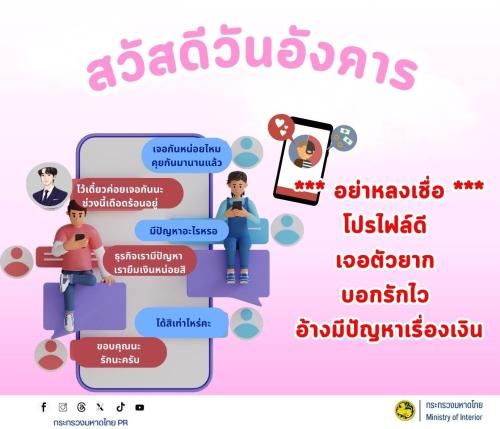 เตือนภัยที่น่าสนใจจาก กระทรวงมหาดไทย มาฝากกัน โดยเฉพาะใครที่กำลังเปิดใจคุยกับคนในโลกโซเชียล ต้องอ่านโพสต์นี้ให้จบ!